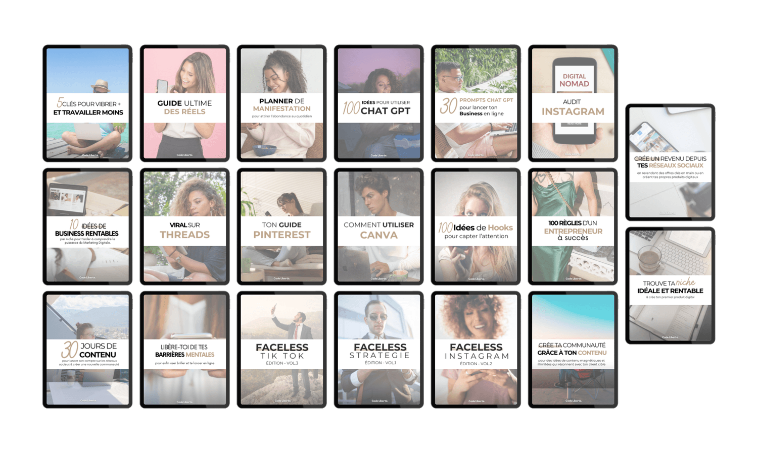 À l'intérieur de Code Liberté : tu auras accès à 20 produits PLR à vendre qui sont créer pour toi et tes clients, tu peux les revendre à des prix très attractifs allant de 47 € à 297€ pour générer tes premiers revenus passifs.